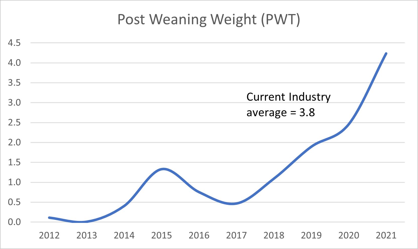 DNA Parentage and genomic testing has allowed Merino seed stock breeders to capture more accurate relationships between animals to enhance accuracy of the estimated breeding value predictions. With more trust in using ASBVs as part of their selection toolbox, the collective ram breeder group are improving their rate of genetic gain. In the first year of the project participants have increased the rate of genetic gain within the group by 2.4 index and are 5 MP+ index points higher than the rest of the MERINOSELECT database when comparing average index improvement.