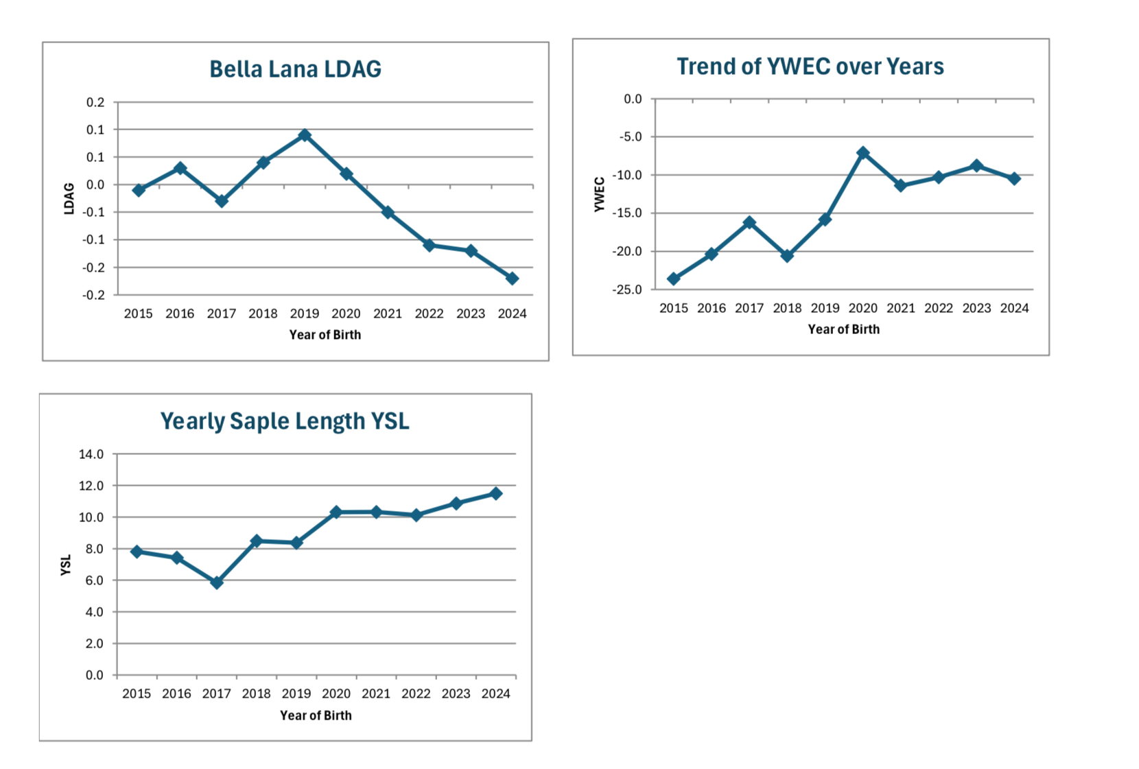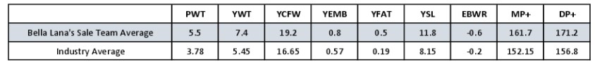 Bella Lana Poll Merino’s Sale Team’s ASBVs for 2022