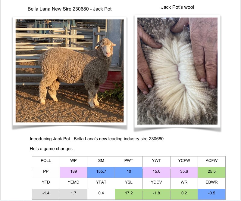 After years of dedicated, selective breeding – supported by careful investment – Bella Lana Poll Merino is proud to introduce a truly outstanding sire.